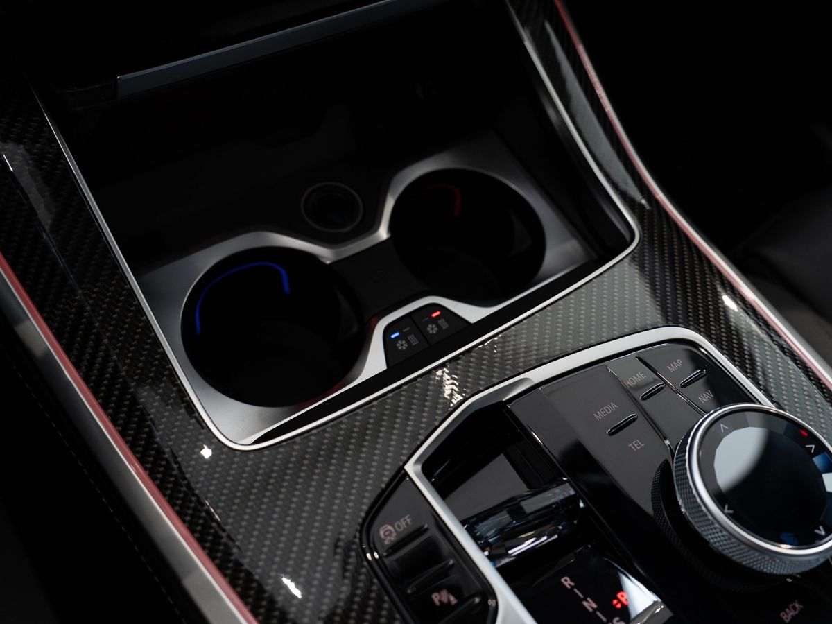 Стеклянная отделка деталей интерьера CraftedClarity: переключатель переключения передач с подсветкой символа "X", регулятор громкости, контроллер iDrive, кнопка Start/Stop
